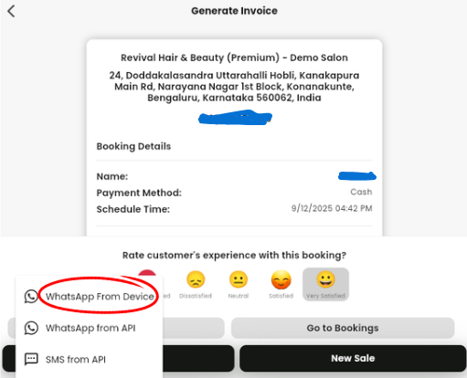 When you click Share → WhatsApp from Device, the system opens WhatsApp on your mobile or desktop.