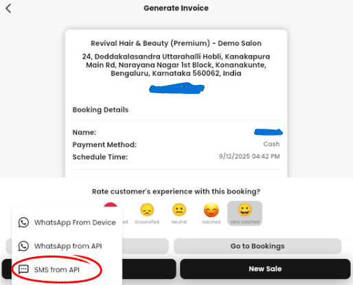 When you click Share → SMS from API, the system sends the invoice URL via the SMS.