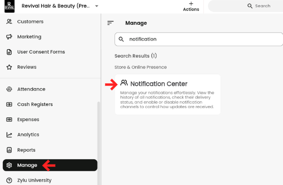 - Go to Manage -> Notification Center